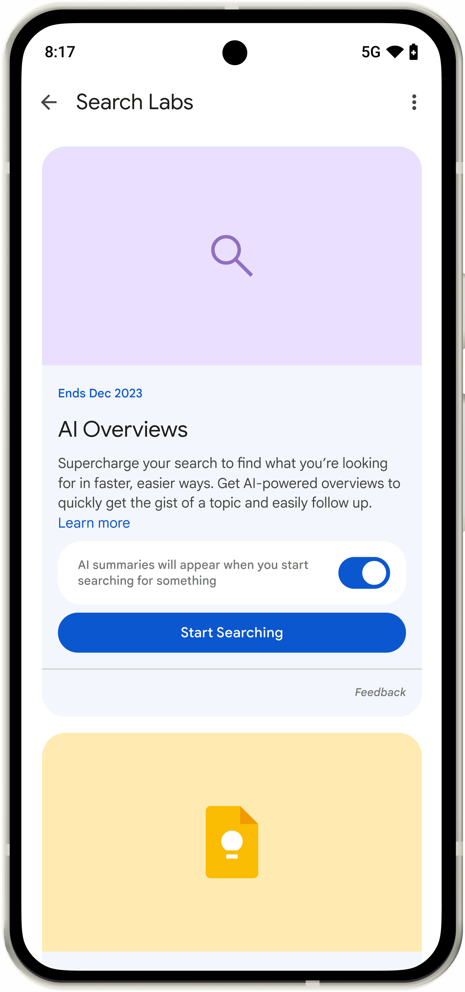 The redesigned experiment cards in Search Labs aim to capture user interest and invite them to discover the potential of experimental search features.